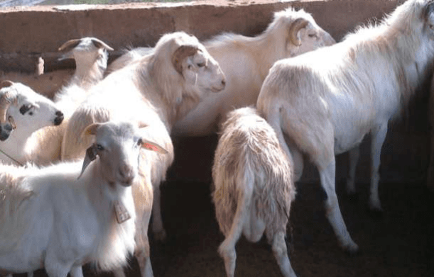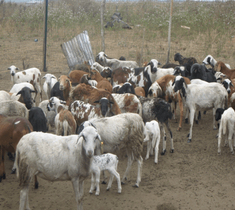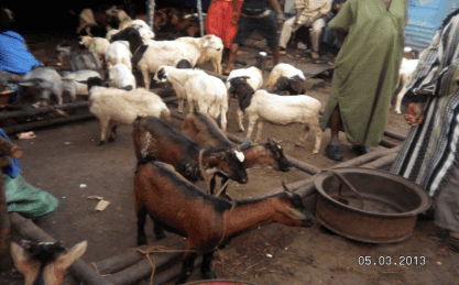 Djallonké Sheep (in the back) and Djallonké Goats (in the front) in Gambia.