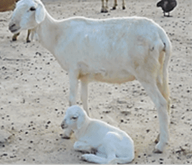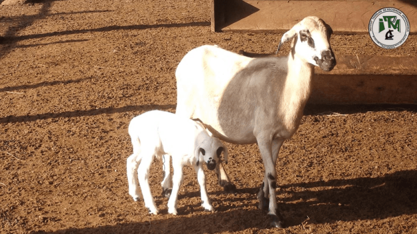 Djallonké sheep ewe with lamb at CRASH Kolokopé of the Institut Togolais de Recherche Agronomique (ITRA) in Togo.