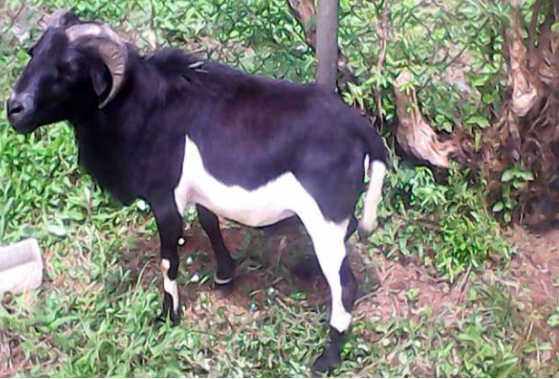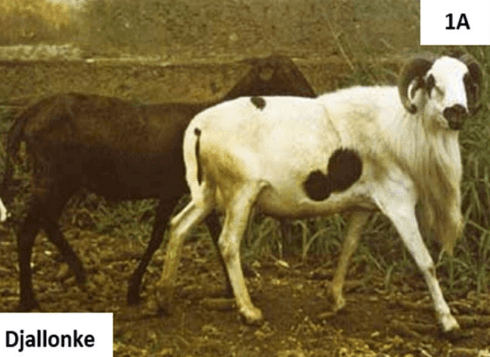 Djallonké ram "piebald" coat pattern. (Southwestern Nigeria)