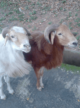 Djallonké rams with "fawn" and "red" coat pattern in Ibadan, Nigeria.