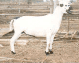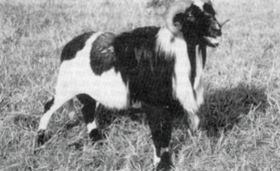 Djallonké ram "skewbald" coat pattern. (Southwestern Nigeria)