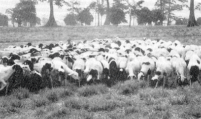 Djallonké breeding herd at the (Centre National Ovin) in Béoumi, Ivory Coast.