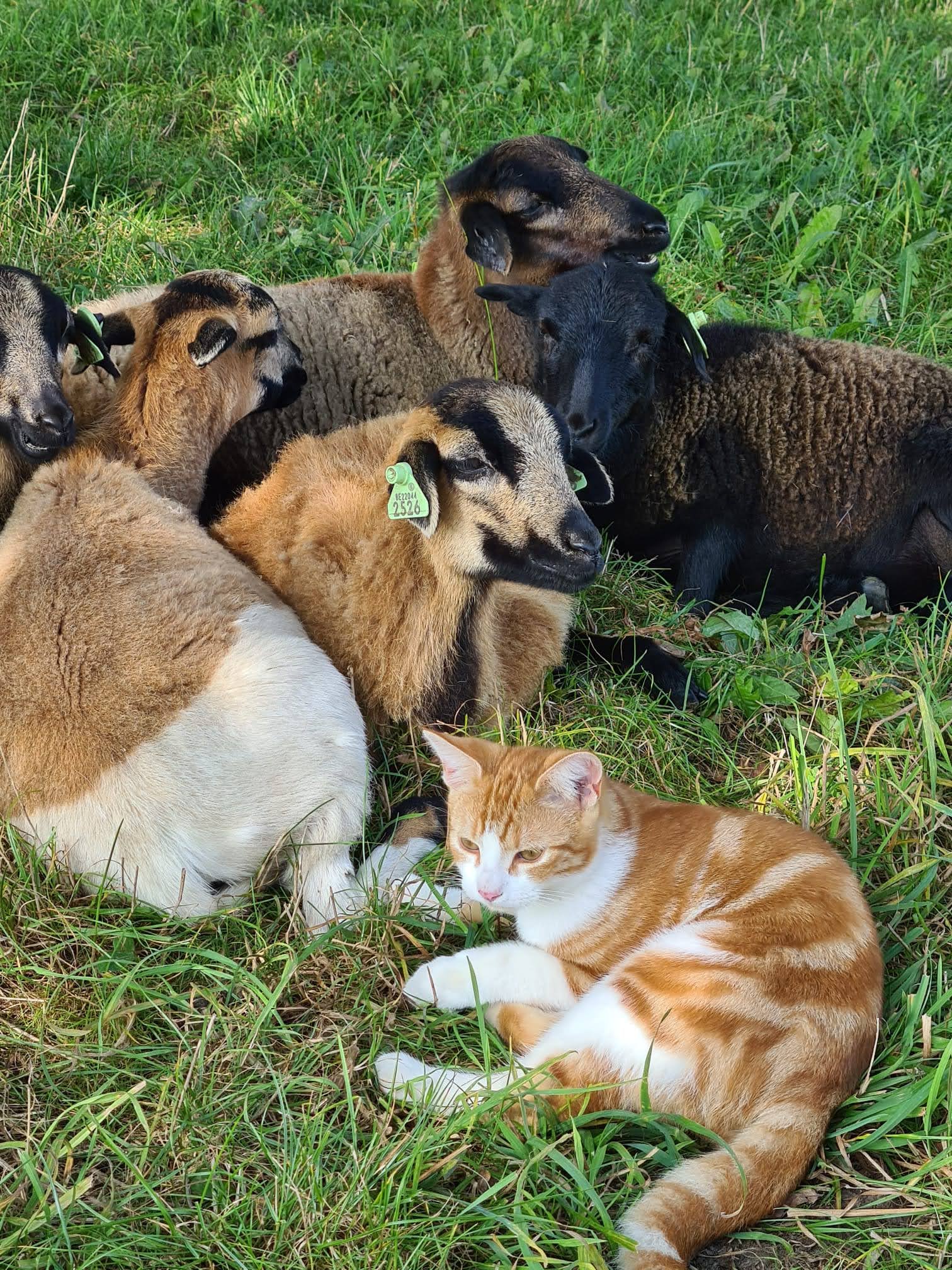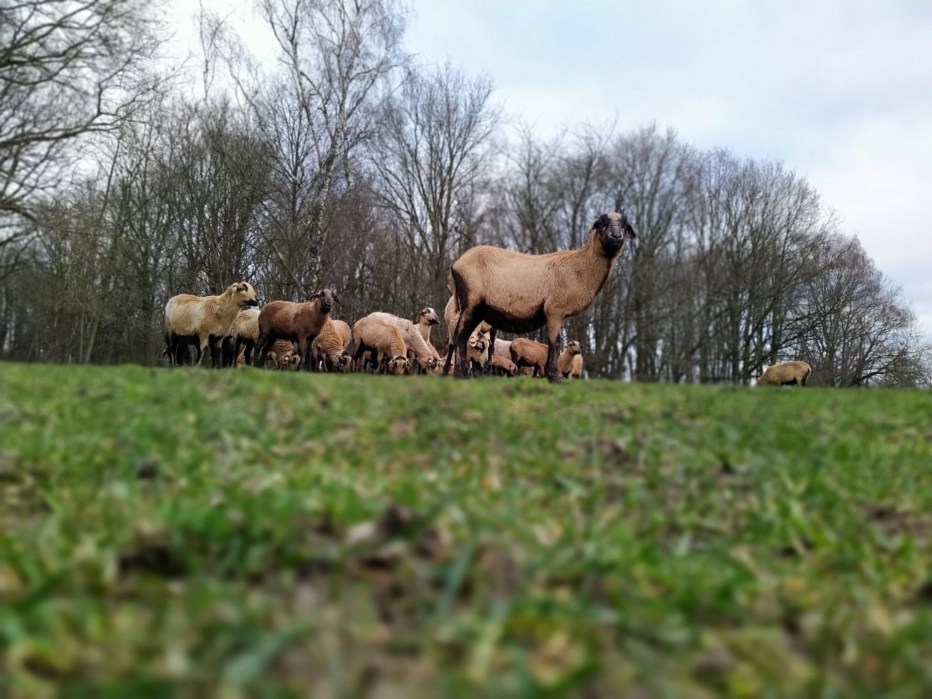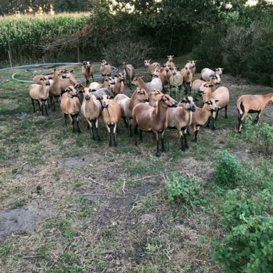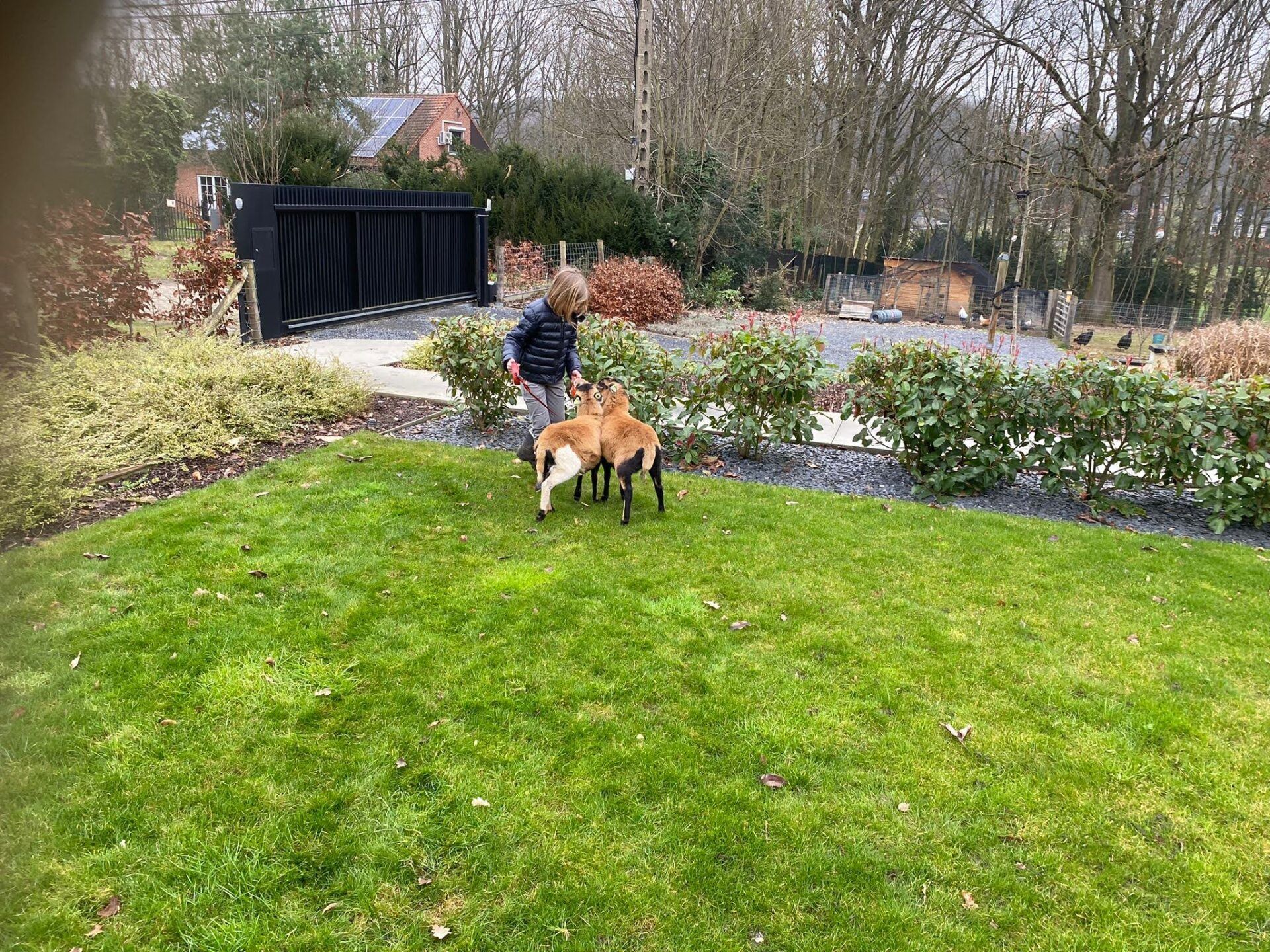 Djallonké sheep herd with ewes from different bloodlines (Bossaert, Van 't Wilgenhof, Den Bronstige van Holsbeeks...) and the ram Nikwe's Black Jumper.